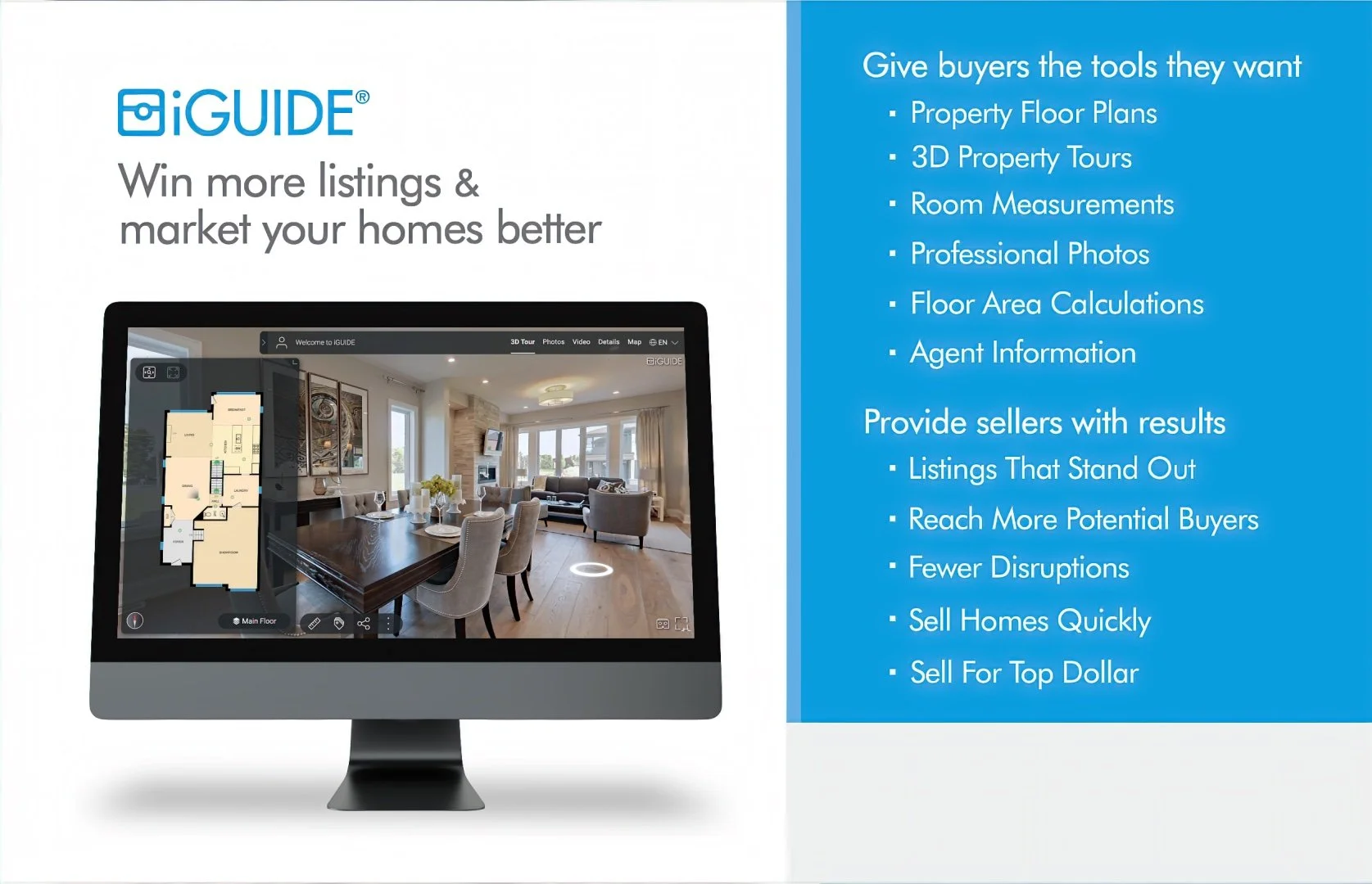 iGUIDE® is a virtual tour & floor plan platform for Real Estate Professionals, Architects, Interior Designers, Hotel, Vacation Resorts, and Home Builders to share information with clients.